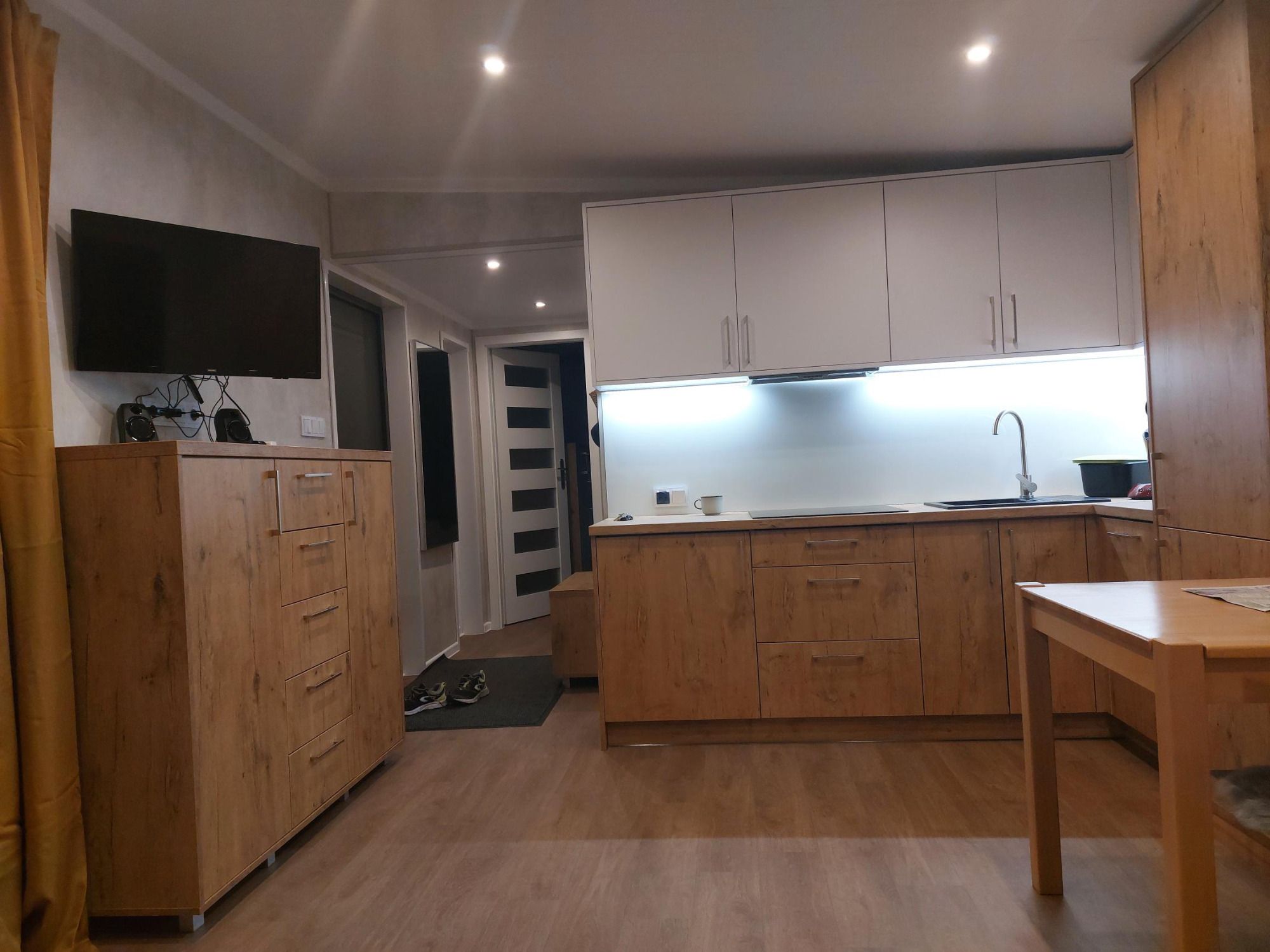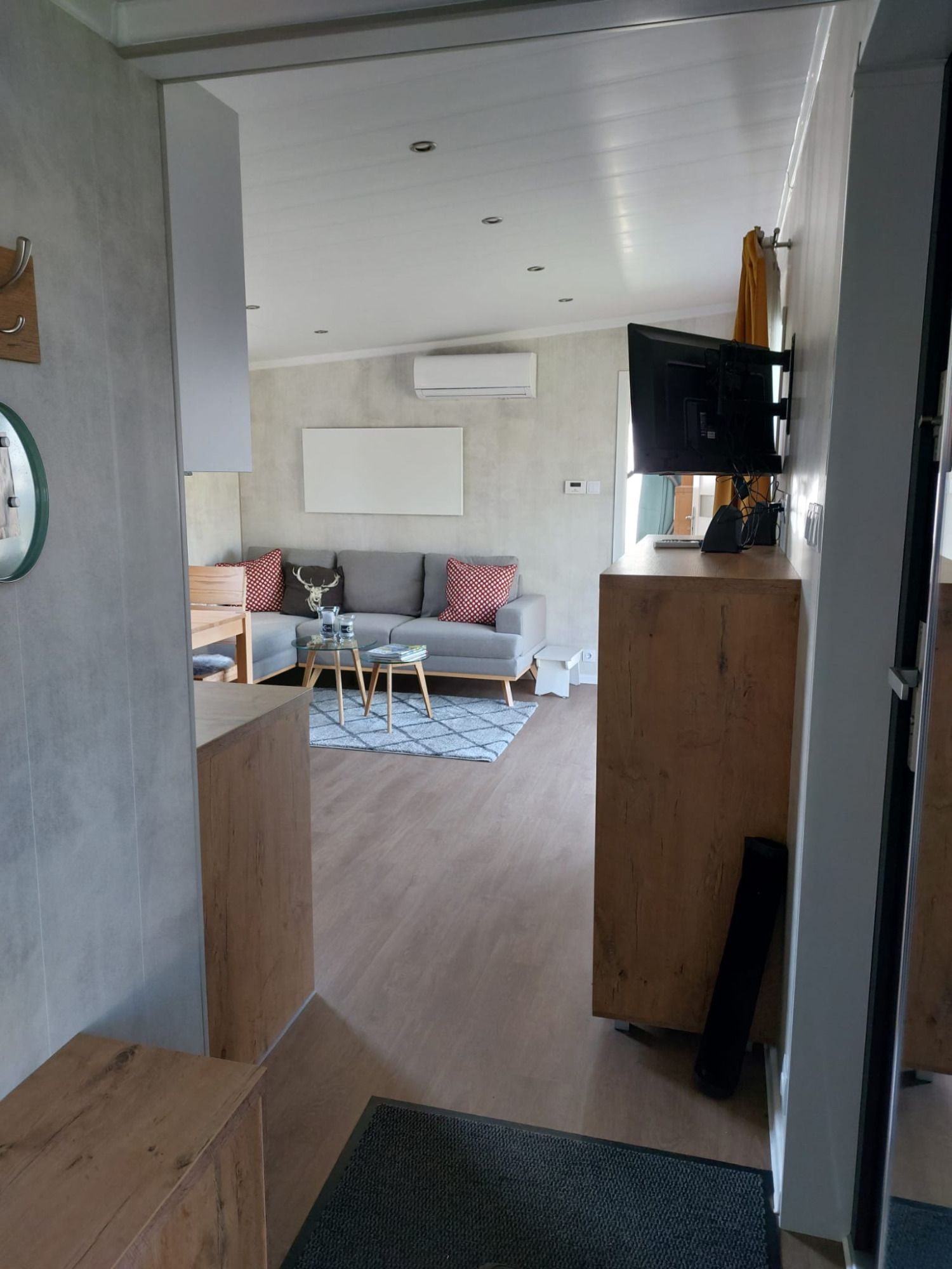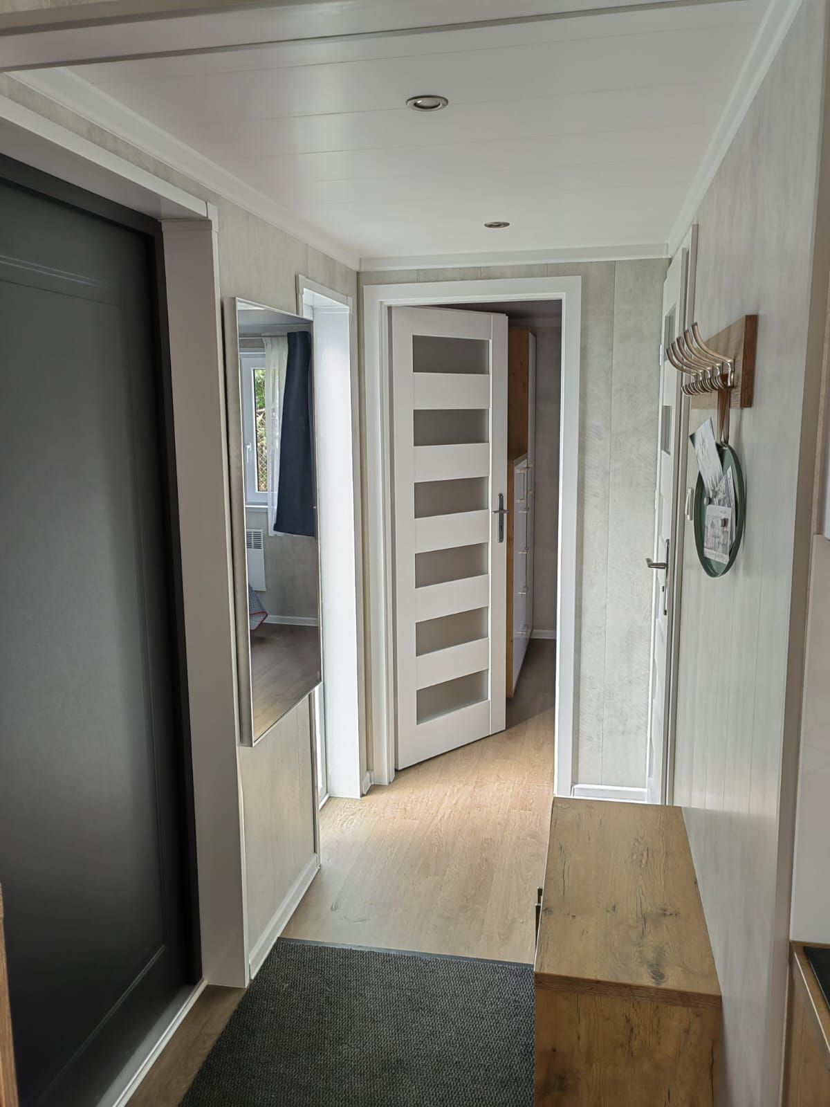 Das Ferienhaus bietet auf 48 m2 zwei Schlafzimmer, Wohnküche, Bad und großzügige Terrasse, ideal für eine vierköpfige Familie.